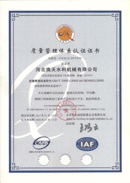 換天質(zhì)量管理體系認證證書