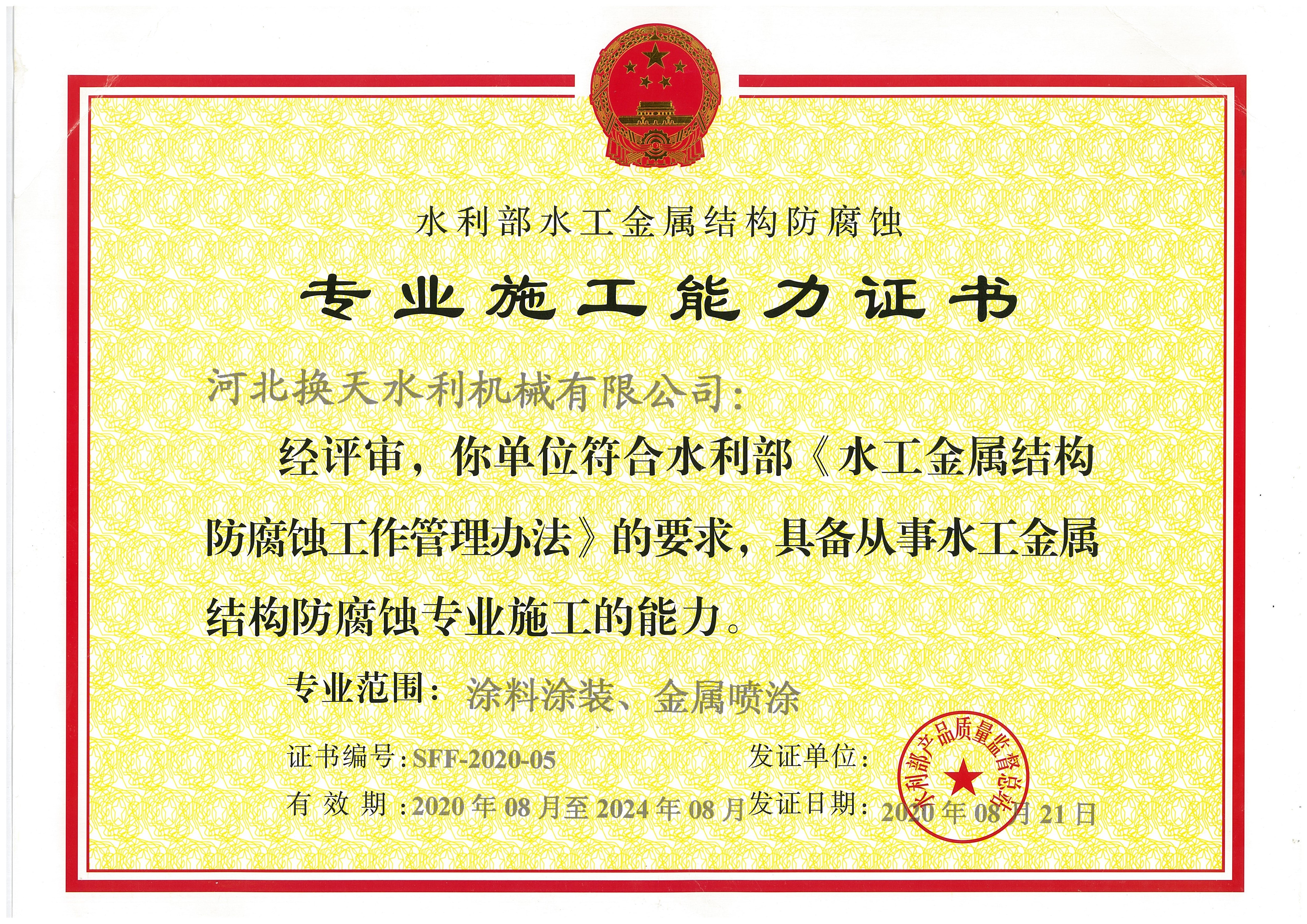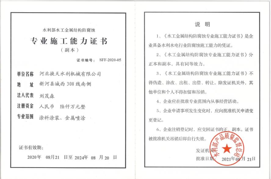 水利專業(yè)施工能力證書